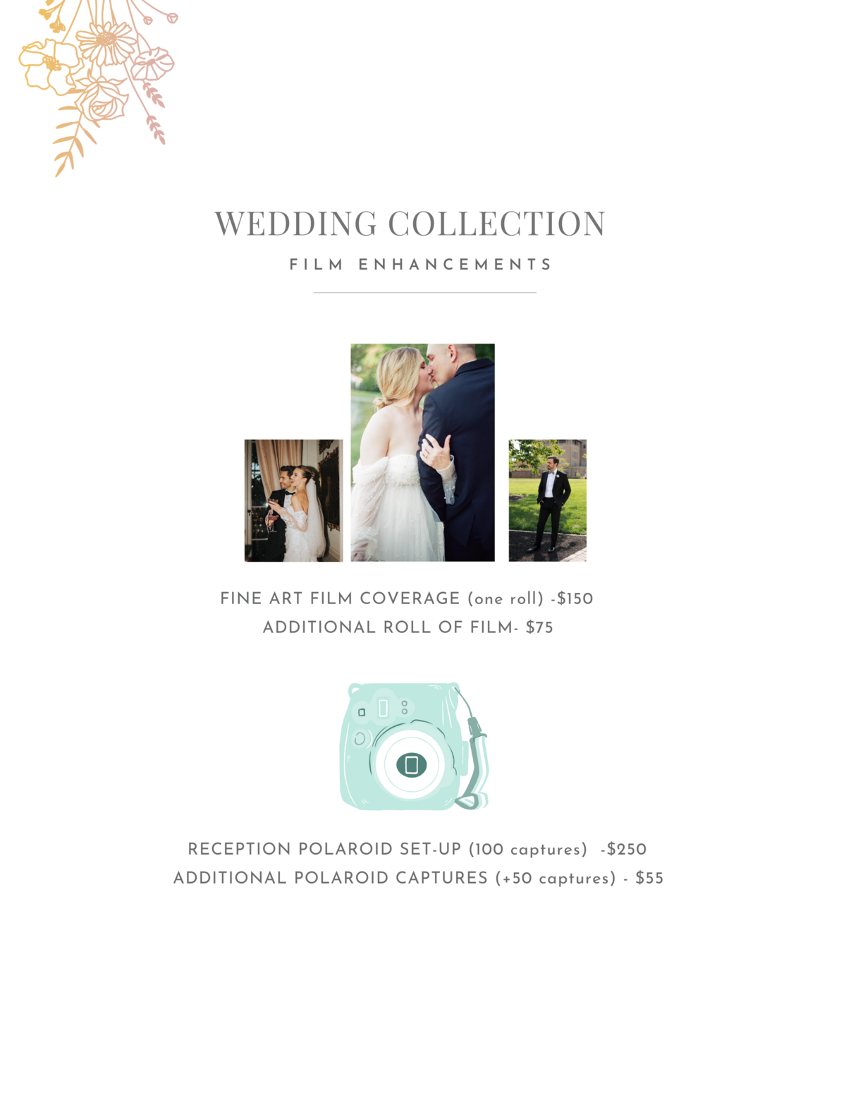 You will receive 50-100 high-resolution digital photographs per hour of coverage (on average), a personal-use print release, and all of my years of experience to help ensure everything is both super fun & super smooth along the way. And if you want heirloom artwork or additional portrait sessions, it's all there for you, too!